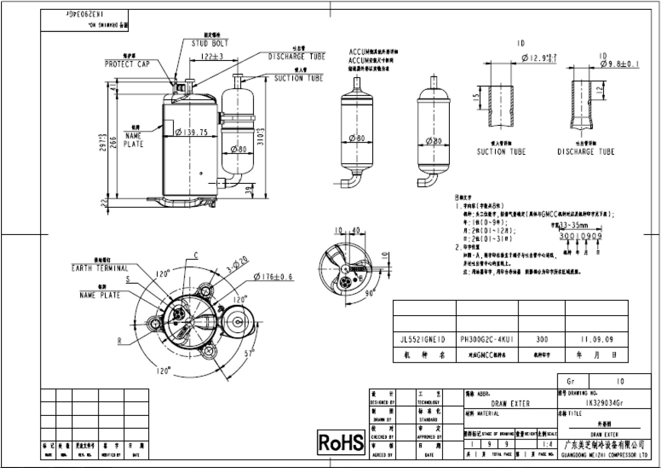 Rotary hermetic compressor GMCC PH300G2C-4KU1