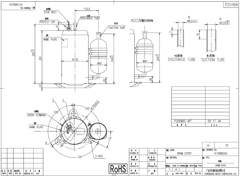 Rotary hermetic compressor GMCC PJ250M2C-4FT