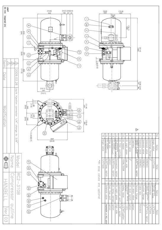 - Ratio volumen compresor (Vi): 2,2 / 2,6 / 3,0 / 3,5