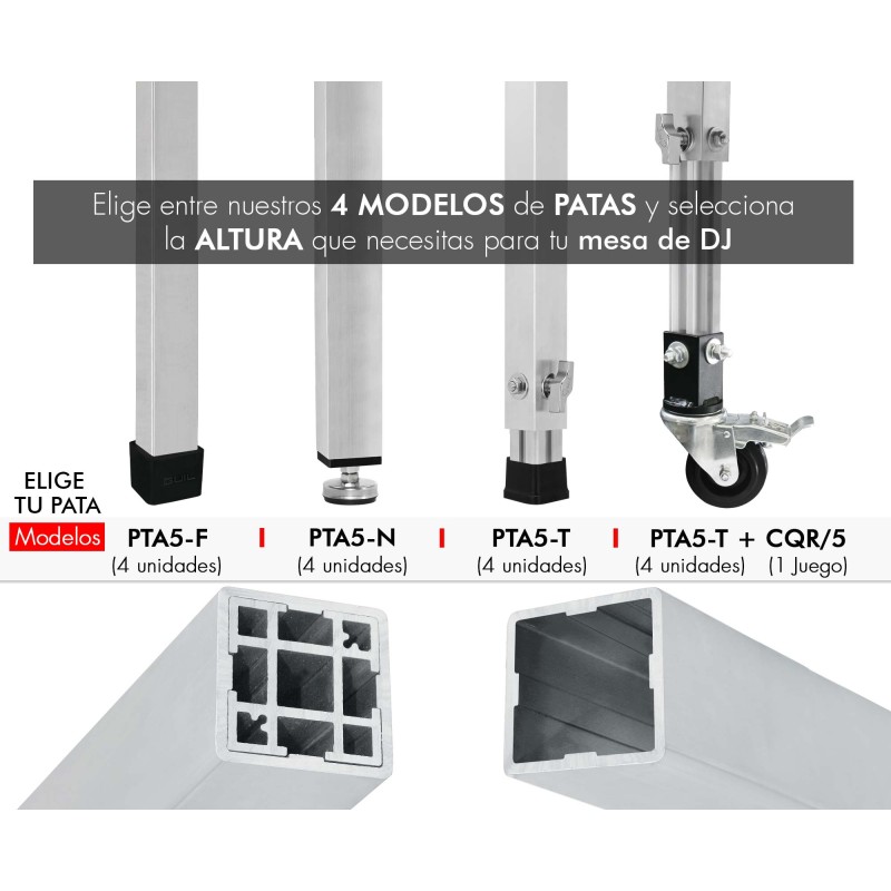 Gracias a su diseño de patas intercambiables, se pueden alcanzar diferentes alturas simplemente utilizando diferentes juegos de patas, tanto de altura fija como regulable. Pudiendo así ser utilizadas por músicos de diferentes estaturas. Incluso si se desea una mesa de DJ móvil, podemos incorporar ruedas a las patas.